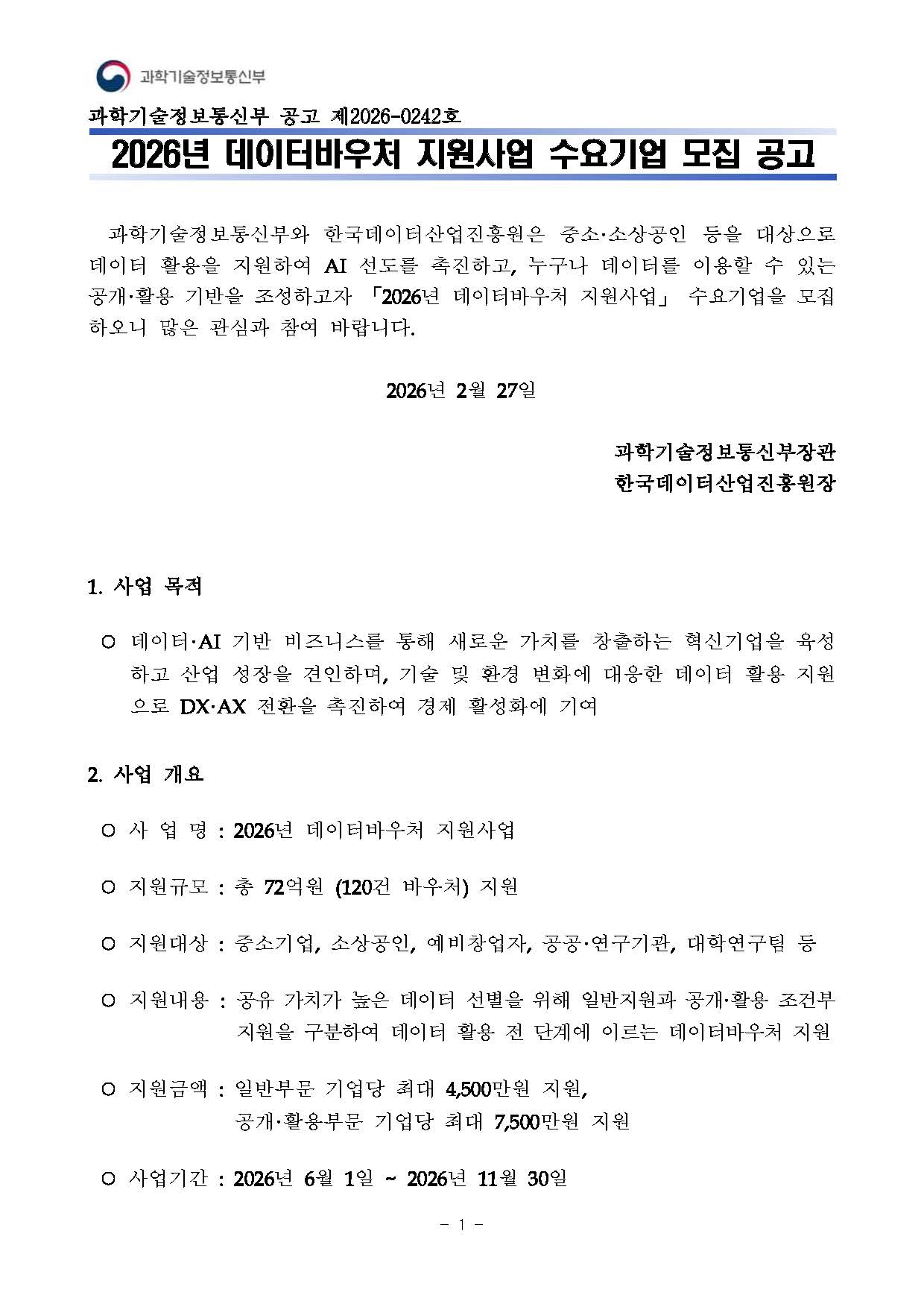 1.(공고문) 2026년 데이터바우처 지원사업 공고문 (1).pdf