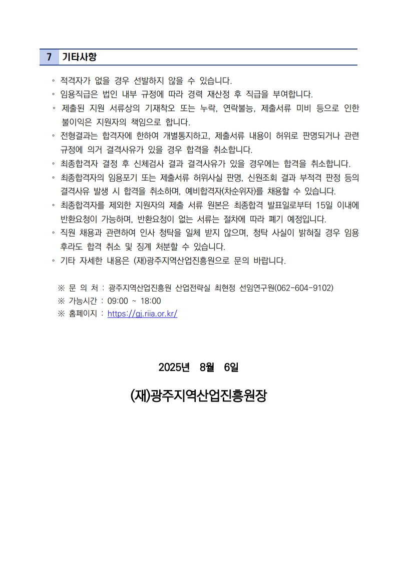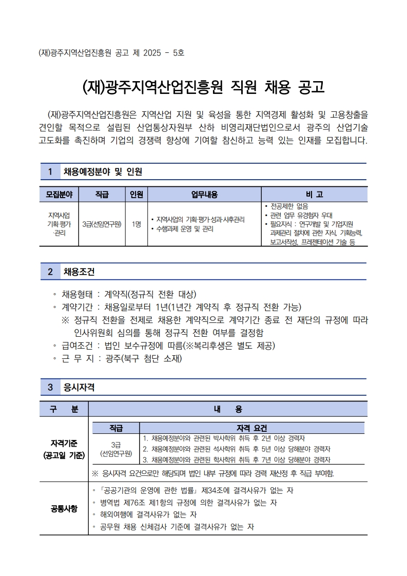 (재)광주지역산업진흥원 직원 채용공고