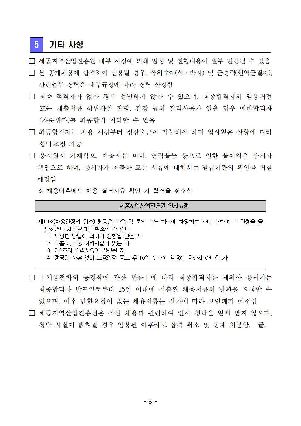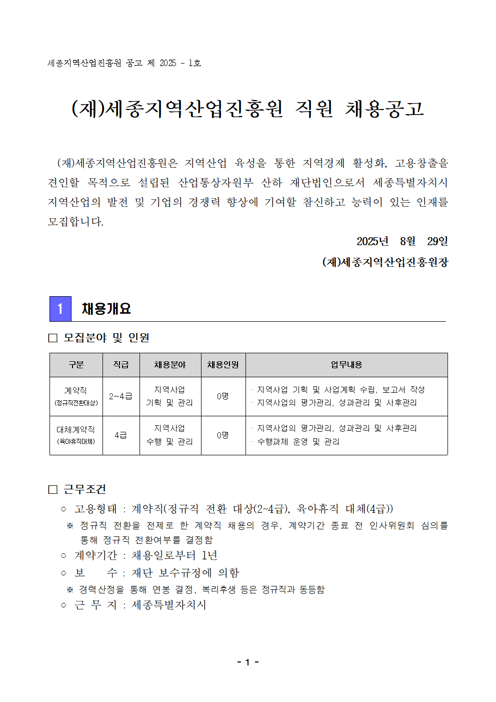 (재)세종지역산업진흥원 직원채용 공고